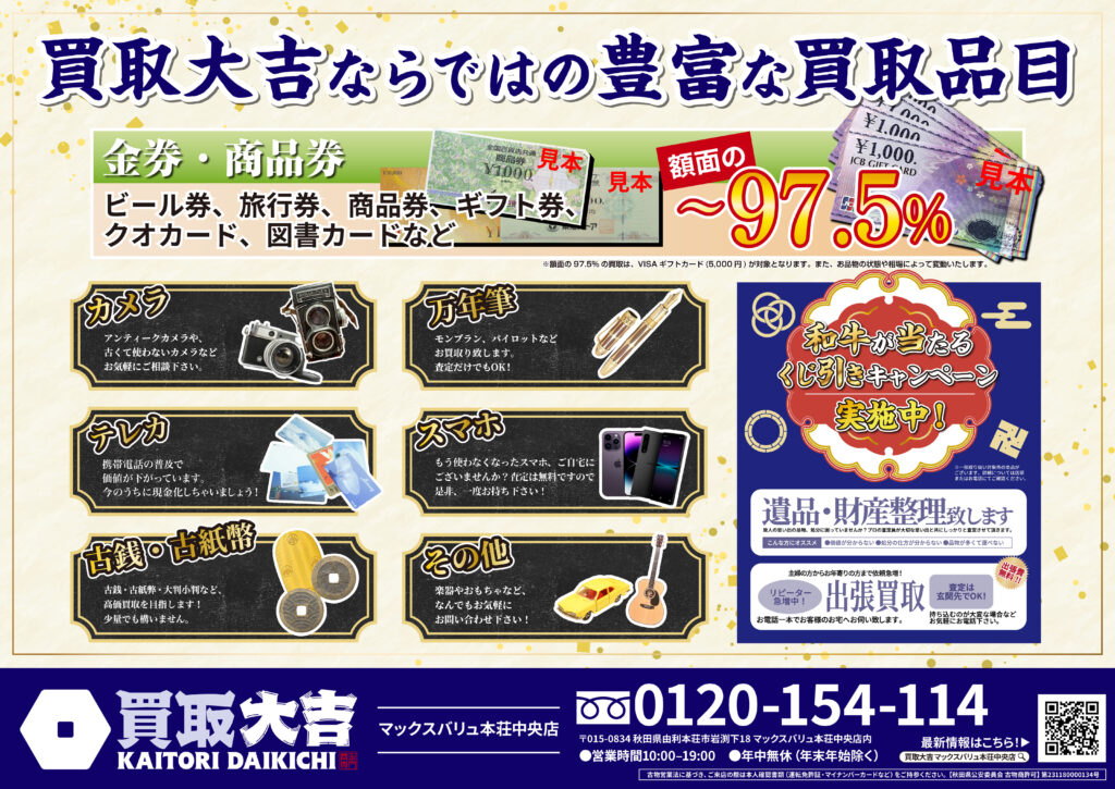 金・貴金属・ブランド品はもちろん、お値段がつくか迷われているものも是非お持ちください。